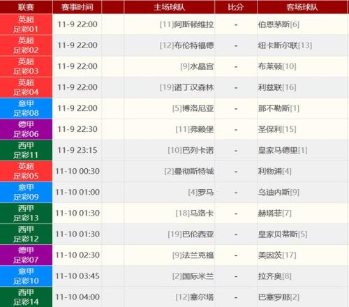 其他赛事比分: