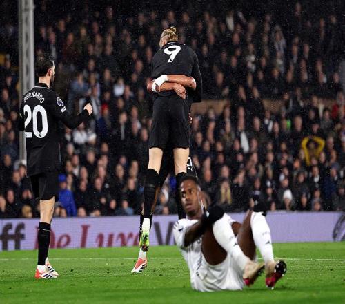 虽然落后的比分较大,但富勒姆随之展开反扑,第57分钟,富勒姆右路传中被破坏,伊沃比弧顶处打出一脚漂亮的推杆死角,多纳鲁马同样鞭长莫及,5:2!第69分钟,刚刚被换上了萨维尼奥左路下底传中,哈兰德后点力压后卫头球攻门,皮球第二次打在了门框上;第72分钟,史密斯-罗右路直传,卡斯塔涅跟进倒三角被破坏,丘库埃泽迎球爆缸入网再追一球,5:3!