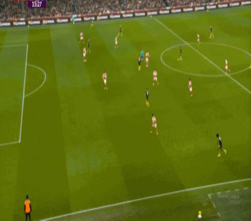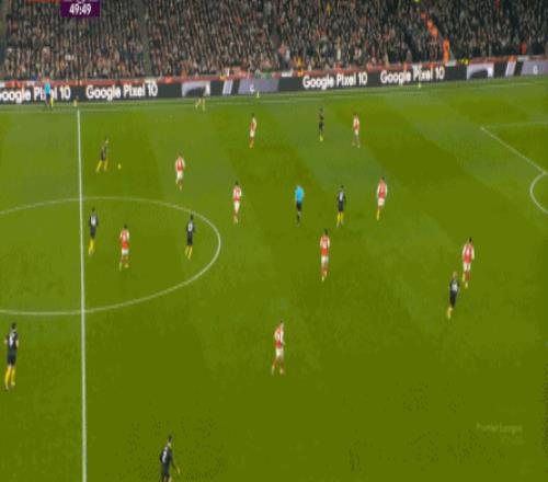 你说这有没有效,当然还是有的,比如在阵型拉得更开之后,阿森纳通过边路形成的进攻效果确实提升了半个档次: