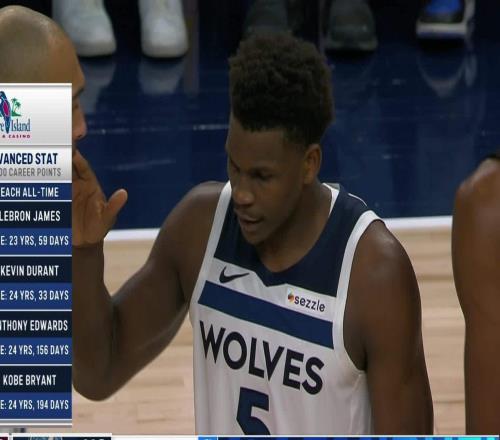 仅次于詹杜,爱德华兹超越科比成为NBA历史第3年轻的万分先生